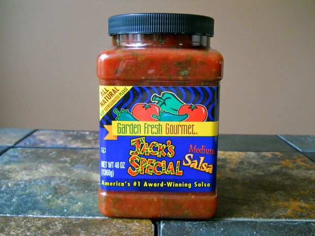 This is Jack’s Salsa. It’s not spicy at all and it is absolutely delicious!! We use it exclusively in our house. They carry it at our local grocery store, Wegman’s and I’ve heard they have it at Costco. It’s next to the shredded cheese in our store. Look for it in your grocery store, you won’t be sorry!